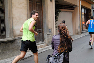 El «Chichi Runner», la seva «llebre» i una noia que aplaudeix molt
