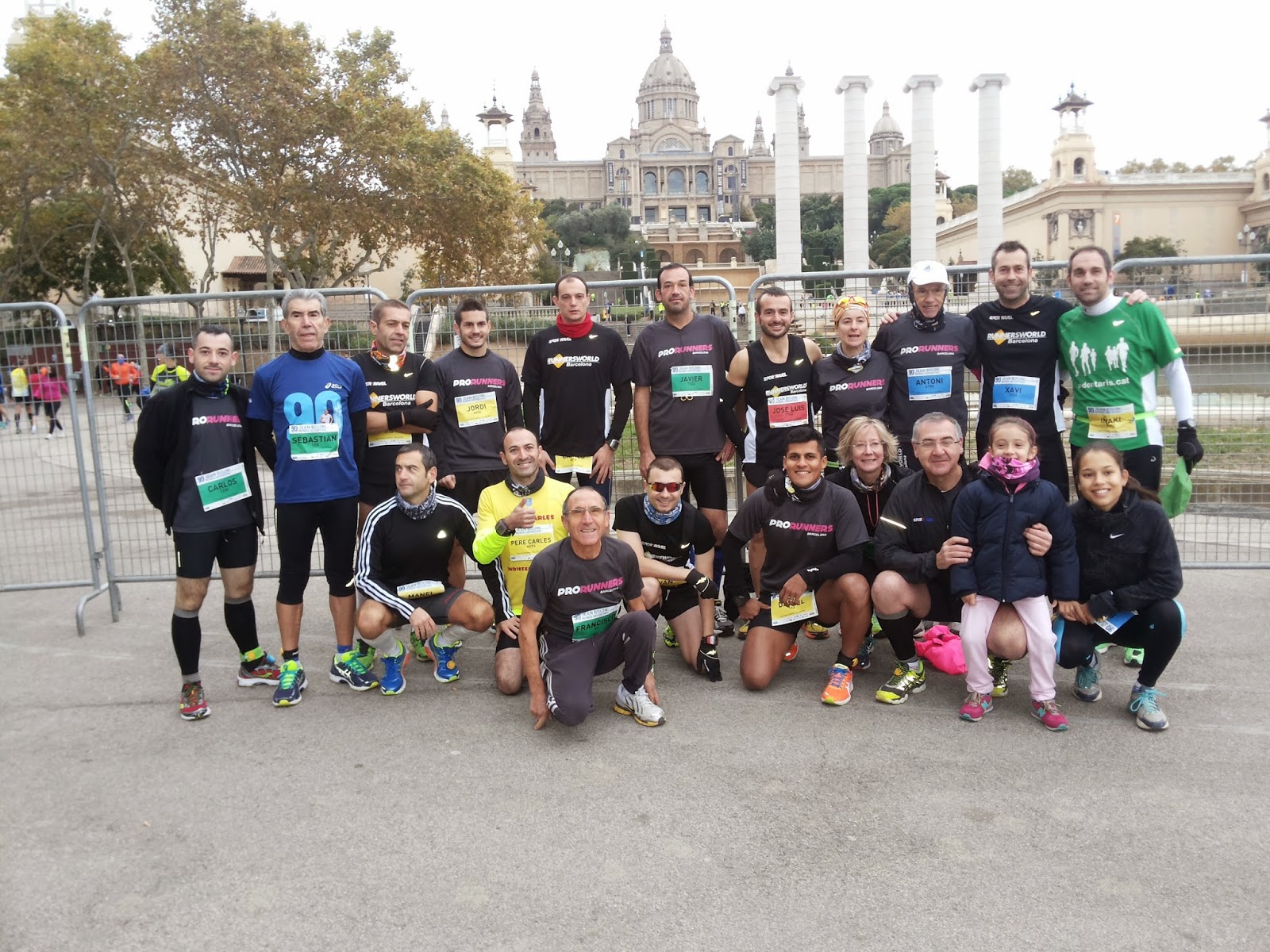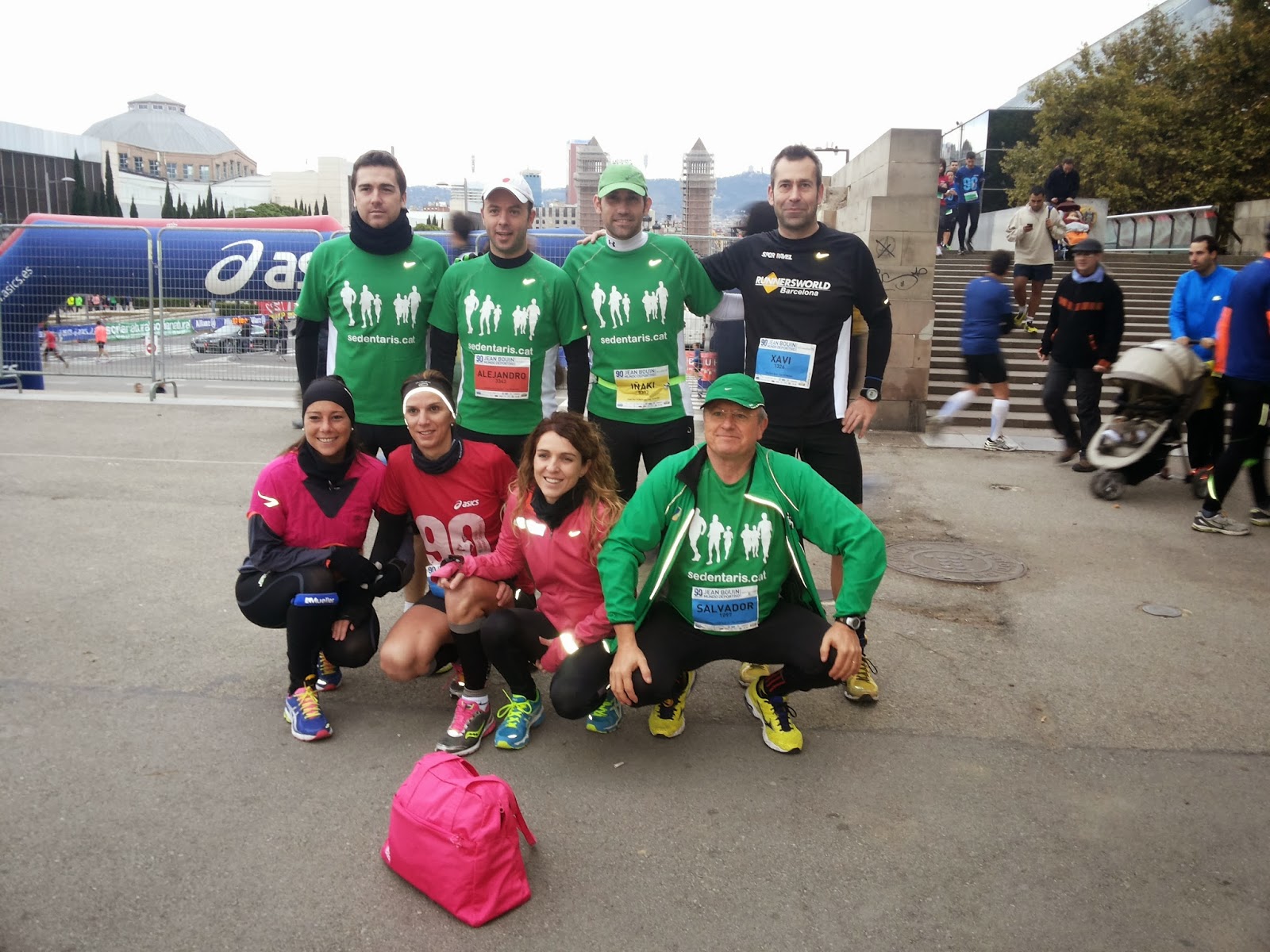 El domingo 24 de noviembre corrimos la 90ª edición de la Jean Bouin. Este año corrimos bastante gente de los SEDENTARIS comparado con el año pasado. Esta edición tenía como novedad la carrera de 5 Km con salida en las fuentes de Montjuïc y llegada en Arc de Triomf. La hora de salida de los de 5 Km era a las 8:30 y tenían que estar bastante antes para dejar la bolsa en unos camiones que hacían de guardarropía que se la llevaban hasta meta. Dos de nuestros sedentaris, Will y Bea, corrían la de 5 y los dejamos sobre las 7:30 en Plaza España.
