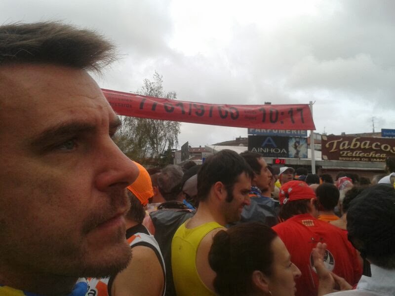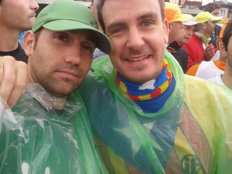 El tiempo pasaba y tocaba el tiempo de salir de los primeros grupos, así que Joan y un servidor nos dispusimos a calentar brevemente, hacer la ultima evacuación urinaria y desear suerte a todos para colocarnos en nuestro cajón. Los nervios y las emociones ya no se podían contener. Alguna foto más y hasta la salida despojándonos de alguna camiseta de abrigo extra que llevábamos. 10, 9, 8…. 3, 2, 1 y a correr!