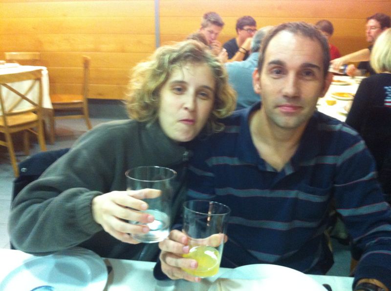 Tras la comida había que buscar algo dulce, así que Joan fue a saquear la pastelería Izar (muy recomendable). Después unos fuimos a descansar y otros a continuar el paseo… hasta que de nuevo la lluvia hizo acto de presencia de un modo más intenso. Así que todos de vuelta al centro de operaciones para secarnos y preparar la cena de pasta. El piso era el punto de encuentro… diferentes amigos fueron pasando… Bayer, COR, … Así que estuvimos entretenidos.