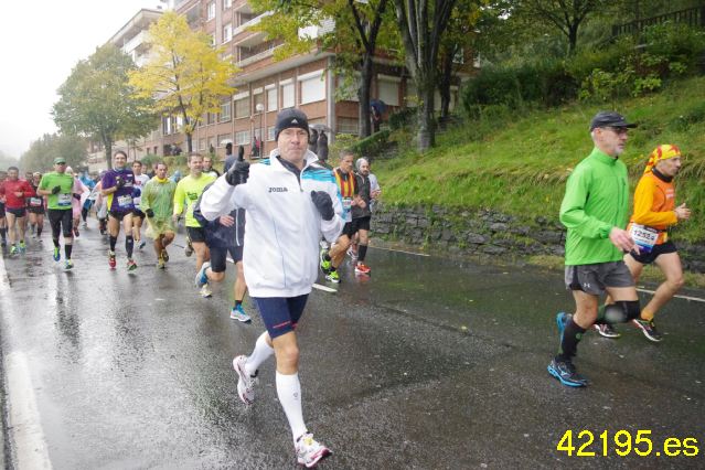 Íbamos pasando los km, siempre por debajo de 5’/km. En compañía se pasa mucho mejor, pero esta vez era un ritmo bueno y no como el año pasado que íbamos haciendo fotos y vídeos con la cámara. El paso por el km 10 fue en algo menos de 49′ así que a pesar de la subida habíamos ampliado el margen (24’50» el parcial). Fuimos pasando pueblos, avituallamientos, gente y más gente, … Volvió la lluvia aunque de forma más leve. En Pasajes por la zona del puerto había que ir esquivando charcos… y es el tramo más aburrido. Ahi pasamos por el km 15 con un buen ritmo ya que el parcial había sido de 23’58″… ya teníamos más de 2′ de margen con nuestro tiempo objetivo.