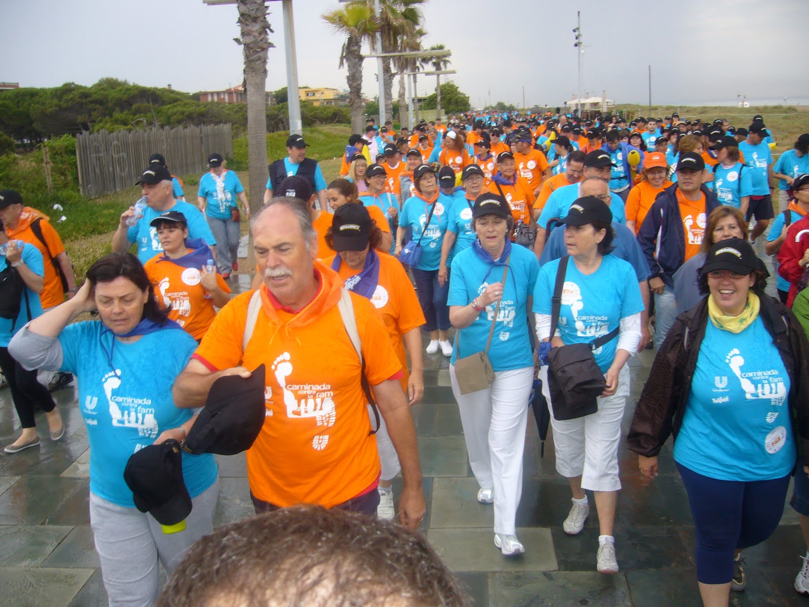 La caminata popular en Castelldefels se iniciaba en el Paseo Marítimo junto al Club Nautico, donde unos cuantos voluntarios te recibían amablemente explicando la iniciativa solidaria. Tras realizar un donativo, te daban una camiseta, un pañuelo y una gorra. El recorrido de la caminata eran 5km por el Paseo Maritimo. Se esperaban 2.500 personas, y a pesar de la lluvia el número de participantes ha rondado los 3.000 participantes en Castelldefels. Así pues un buen numero de personas, nos hemos puesto en marcha para ser solidarios y además aprovechar para dejar atrás el sedentarismo.