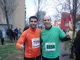 Cursa amb molta gent coneguda. Abans de començar, la tradicional concentració prèvia amb els Sedentaris. Aquest cop vam ser el Carles, el David, l’Iñigo, el Manel, el Will i l’Iñaki. A la línia de sortida vaig trobar-me amb el Dani, que també feia de llebre d’un amic. I en acabar, salutació ràpida amb el Pau d’ironpanic, brindis nadalenc amb els amics de Runnersworld i amb el Marc, el nostre entrenador, que al final no va poder córrer. També hi va haver un moment per veure el Lluís, el Mario, el David i l’Alberto, antics companys d’equip de bàsquet a l’AE Casp i que amb alguns d’ells ja vam coincidir en aquesta mateixa cursa l’any passat.