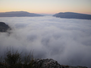 Sopem, dormim, esmorzem i cap a les vuit del matí ens posem en marxa. Aquesta vegada, ens diuen, que han millorat la senyalització (gràcies Joaquin Olmo i Juan Urquiza), i ho comprovem perquè aquesta vegada sí que trobem l’entrada bona a la cresta, després de fer-nos baixar tot el camí de les Cireres de l’Arboç, que ens deixa a escassos metres de l’embassament de Canelles.