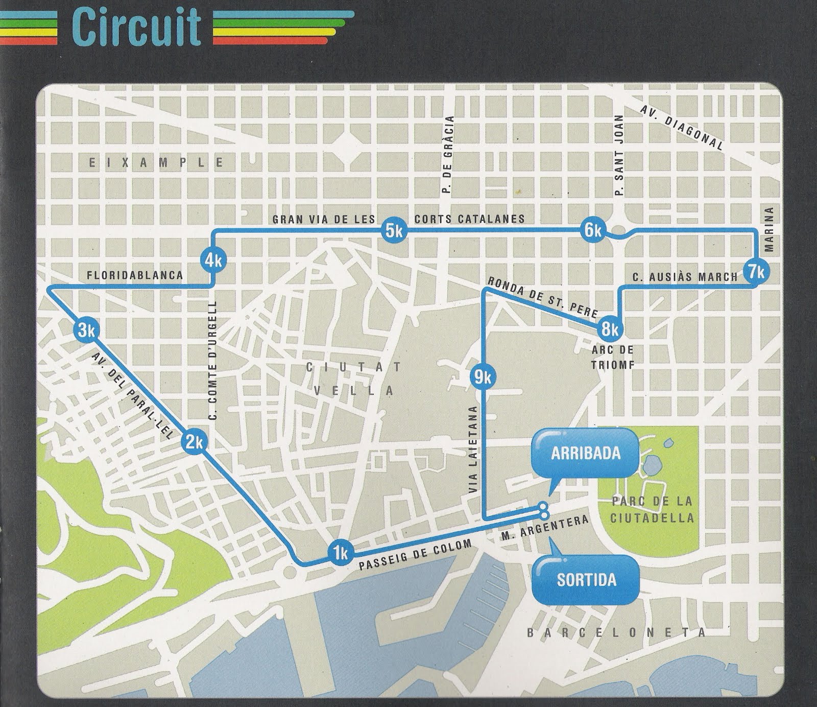 Recorregut Cursa Bombers 2010, amb punts quilomètrics: