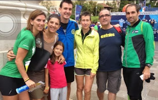 El calentamiento, para los cuatro que lo hacemos, es breve. Amenaza lluvia, pero desgraciadamente la carrera va a transcurrir en seco, eso sí, con una humedad del 200% (o eso parece). Hubiera preferido que la salida fuera a las 9, ya no viene de media hora y un grado menos se nota.