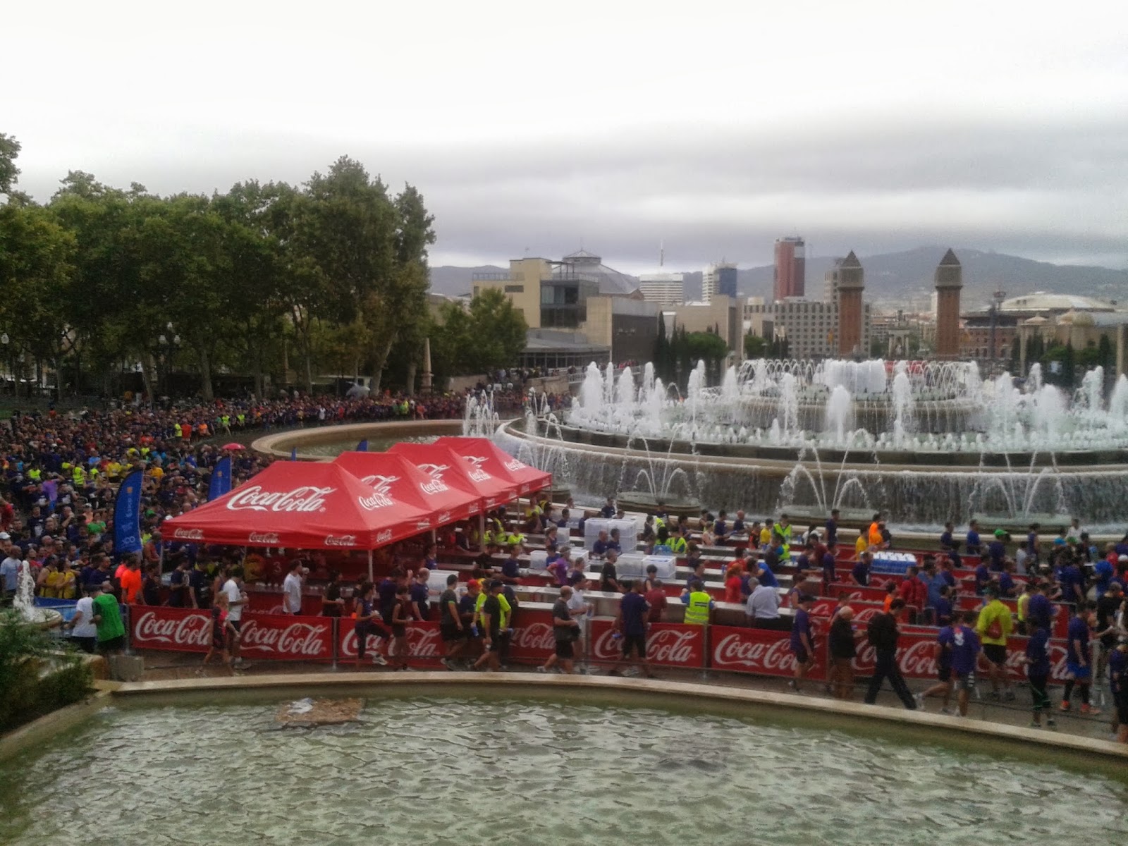 Vamos a ritmo bastante constante, el primer km por debajo de 4:40 (por la estampida inicial y la ya mencionada bajadita) pero del 2 al 4 vamos a 4:50. El siguiente toca apurar un poco: llegamos a Pg. de Sant Joan, de bajada. Vamos apretaditos y además el público se ha animado a salir de sus casas. Voy con cuidado de no tropezar. Recortamos unos cuantos segundos: a 4:30. Cogemos agua, pasamos por Arc de Triomf y nos adentramos en la gris Ronda de Sant Pere, que se me atraganta. Me pesan las piernas, me pesan los edificios a lado y lado pero mi compañero tira de mí y corro con la cabeza. Quizá no me habría ido mal un gel para este momento. Salimos de allí y me dice que siga, que si puede me alcanza más tarde. Ya no me fijo dónde estamos, solo pienso en no decaer y en que no me adelanten muchos. Pasa alguno muy fresco, ¿se incorpora ahora?, ¿se dopa?, ¿se ha dosificado mejor?, ¡qué envidia me dan muchos tíos! Y yo… ¿de menos a más?, ¿progresión? Ni lo sueñes. Este verano he intentado insertar alguna serie larga en los entrenamientos, pero hoy la conexión nerviosa cerebro-pierna se ha cortado. Acabo constante a 4:45 excepto los últimos 200 metros, en los que consigo bajar de 4.