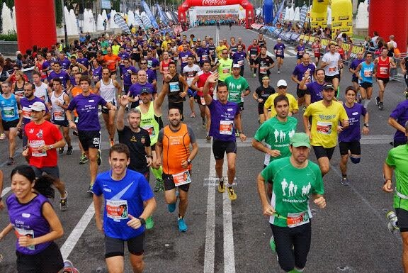 Vamos a los cajones asignados, que además van a tener diferente salida. En el 3 estamos Iñaki, Jandro, Manel y yo. Jandro tiene dorsal verde, cajón 2, pero aún no ha recuperado su nivel de forma y se ofrece a acompañarme. Yo encantada y voy pensando «voy con el número 70 del challenge 10k». ¿Objetivo? Por debajo de 50′