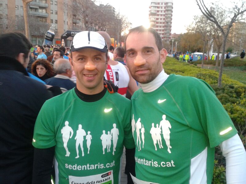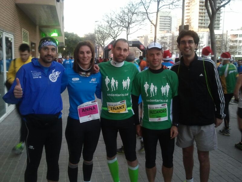 Los miembros del grupo de sedentarios no podíamos terminar el año de otro modo… corriendo! Así que como ya es tradicional unos cuantos participamos en la San Silvestre de Barcelona conocida como la cursa dels Nassos. Allí nos dimos cita con los 11.000 corredores inscritos… cada año se agotan antes las inscripciones a esta carrera.