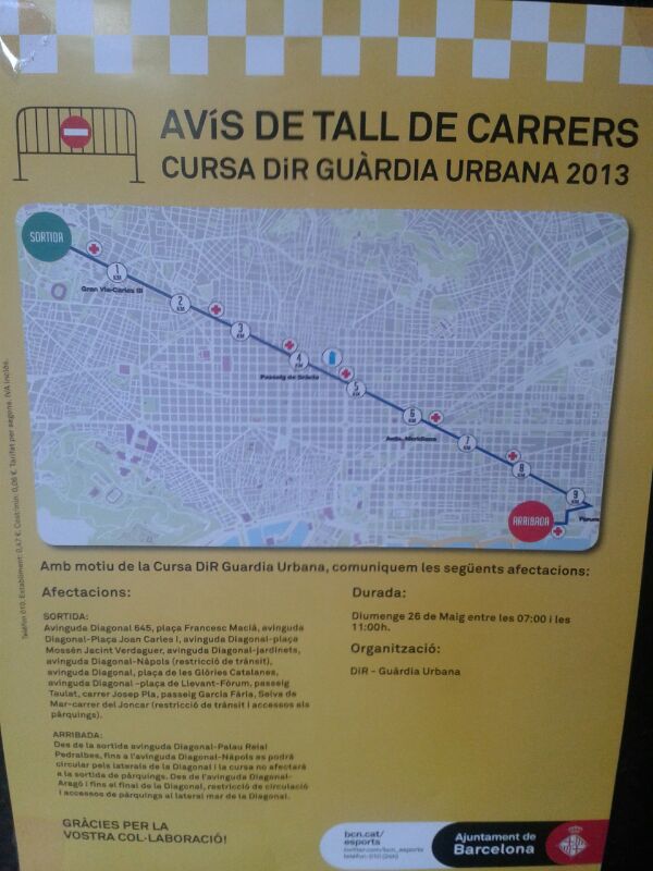 Primera edición de la cursa DIR – Guardía Urbana, en la que puede ser el circuito más recto para un 10K ya que el circuito recorre la Avinguda Diagonal saliendo desde la zona universitaria hasta llegar al forum. En total unos 8.000 corredores, con un % elevado de corredoras merced a la participación de DIR como organizador.