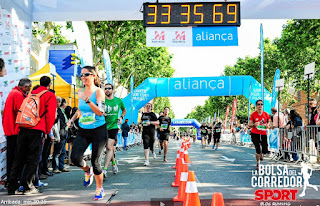 Veo a Will con Bea en meta…. Ha llegado Manel? No, no lo ha visto… Entra Alejandro y nos quedamos a esperar mientras recuperamos el aliento. Al rato vemos a Manel que entra unos metros por delante de Reyes. Más tarde entra Xavi. Todos exhaustos y muertos de calor! Vamos reponiendo líquidos y comentando. Manel explica que iba detrás a unos 100m y que en las rectas nos tenía controlados, así hasta el 7K donde petó… Sabía que su objetivo era difícil, pero arriesgo y no lo consiguió. Entonces esperó a Reyes para ayudarla en los km finales. Buen compañero, y buen «rival» ya que consiguió motivarnos a ambos.