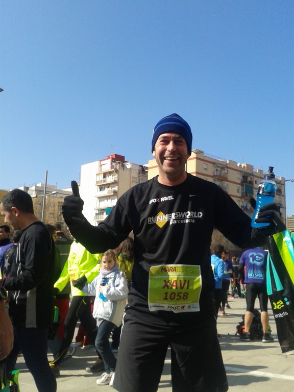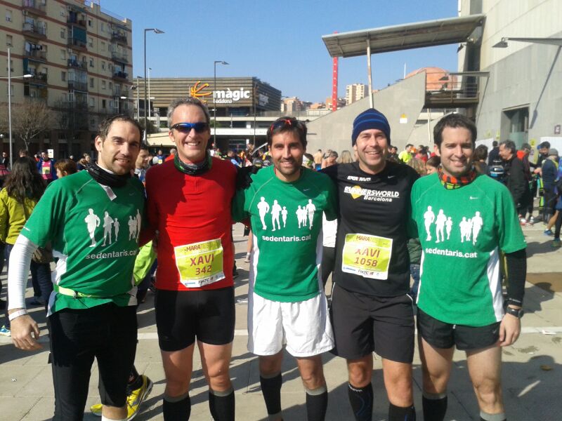 La logística para la carrera ya empezó a prepararse durante la semana, con una perfecta organización para que los Xavis pudieran recoger los dorsales de todos (gracias!). Después múltiples intercambios de mensajes para apurar los últimos entrenos y para fijar el punto de encuentro. También el cambio de última hora de Ferran por Alejandro debido a la lesión. Así pues el domingo, después de la nevada en Barcelona del sábado todos a correr… y es que nos libramos por un día de correr nevando! Eso sí, el frío no faltó así que costaba salir del coche para ir a prepararnos.
