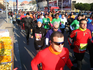 Al principio era un poco caos porque el grupo era muy numeroso y las calles no daban más de sí puesto que todo el mundo iba buscando su ritmo de crucero. Ibamos sobrados, así que fuimos de charla en esta primera parte. Ya en la zona del paseo marítimo vimos que el frio no iba a ser tanto al ir corriendo, así que por suerte tuvimos la afición sedentaria (Eli, Martina, Alba y Miguel) colocada en el 4K y Ferran y Manel pudieron despojarse de algo de abrigo… y como íbamos suaves pues recuperaron pronto la posición.