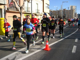 Como se hacia un giro de 180º nos sirvió para ver como iban situados los Xavi’s justo unos metros delante de su liebre. También vimos volar a Sascha y Sergi muy por delante de nosotros. El paso del segundo parcial fue en 25’59», siendo 30″ por debajo de objetivo. En ese punto tomamos el primero de los geles.