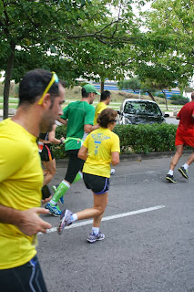 Se sufre el calor y mi mente se dualiza. La carrera que quiero y la carrera que tengo. Lo siento por mis acompañantes. Entre Kms 15 y 16 apretaríamos ritmo, constantes a 5, respiración cómoda, así hasta el 18. Entre Kms 15 y 16 Iñaki va más justo de lo que esperaba, pues si supieras yo… me pesan las piernas, el culo y las pestañas, dos kms más y llegamos al 17 ¡socorro! le confieso que voy justa, pararía, pero eso no se lo digo. Va tirando de mí, suavemente pero me ayuda a no decaer. Vemos al Presi. Manel nos va animando, ve que hemos bajado un poco. Km 18 comentaríamos y pensaríamos que podemos apretar. Acordaríamos que así lo haremos a partir del Km 19. Llegaríamos, ya no quedaría nada e iríamos en progresión, bajaríamos de 5, perderíamos algunos segundos en el puente, pero luego alargaríamos zancada y llevaríamos ritmo alegre. Me sentiría fuerte y visualizaría la entrada.