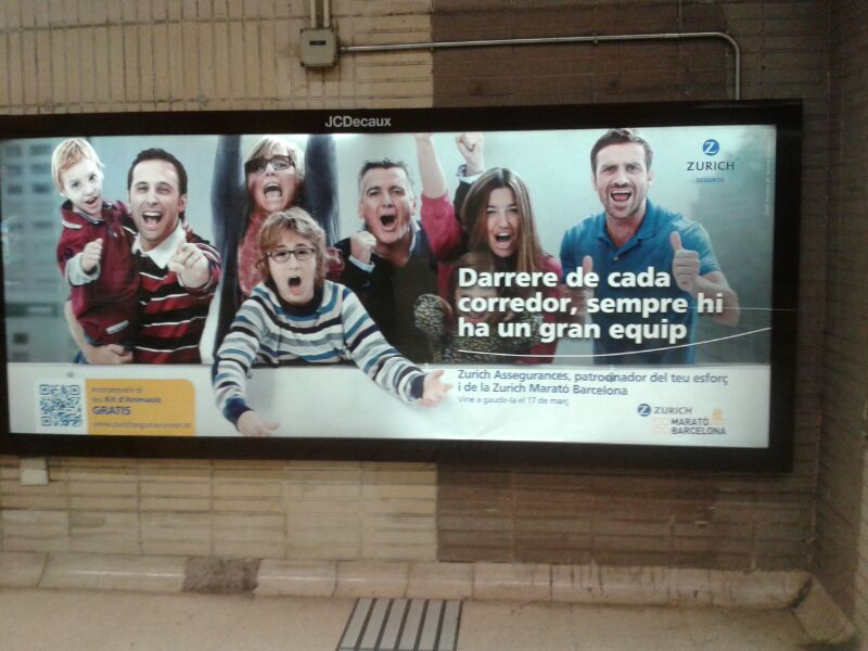 En el centro comercial de Glories el ambiente runner es poco… La lejania con la zona de salida ayuda. Tan solo algún cartel de publicidad y un descuento especial en una zapatería. Curiosa la decoración con un monton de dorsales de maratones de todo el mundo… posiblemente el dueño de la tienda es un buen runner y ha querido tener el detalle… chapeau! Este es el estilo que necesita la ciudad para hacer que el maratón de Barcelona sea grande. Y es que este año es un poco menos grande, hay un menor numero de inscritos con respecto al año pasado… y es que el incremento de precio y la política de cambio de precio por el nº de inscritos en vez de la fecha no ha debido ayudar. Será algo que la organización deberá reflexionar.