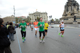 Esta zona esta llena de público y se agradece. La pena es que ya no pasamos por Sant Jaume y las Ramblas, aunque también lo agradezco puesto que había una subida durilla. Joan sigue animando al público que esta algo callado. Ya lleva más de 25K, asi que es destacable su esfuerzo y la labor que esta haciendo por todos nosotros. Me va animando diciendo lo poco que queda ya e intentando que mentalice la llegada. Llegamos a Colón.