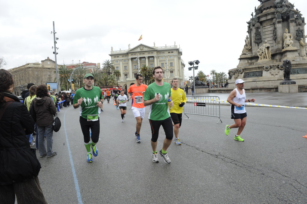 Esta zona esta llena de público y se agradece. La pena es que ya no pasamos por Sant Jaume y las Ramblas, aunque también lo agradezco puesto que había una subida durilla. Joan sigue animando al público que esta algo callado. Ya lleva más de 25K, asi que es destacable su esfuerzo y la labor que esta haciendo por todos nosotros. Me va animando diciendo lo poco que queda ya e intentando que mentalice la llegada. Llegamos a Colón.