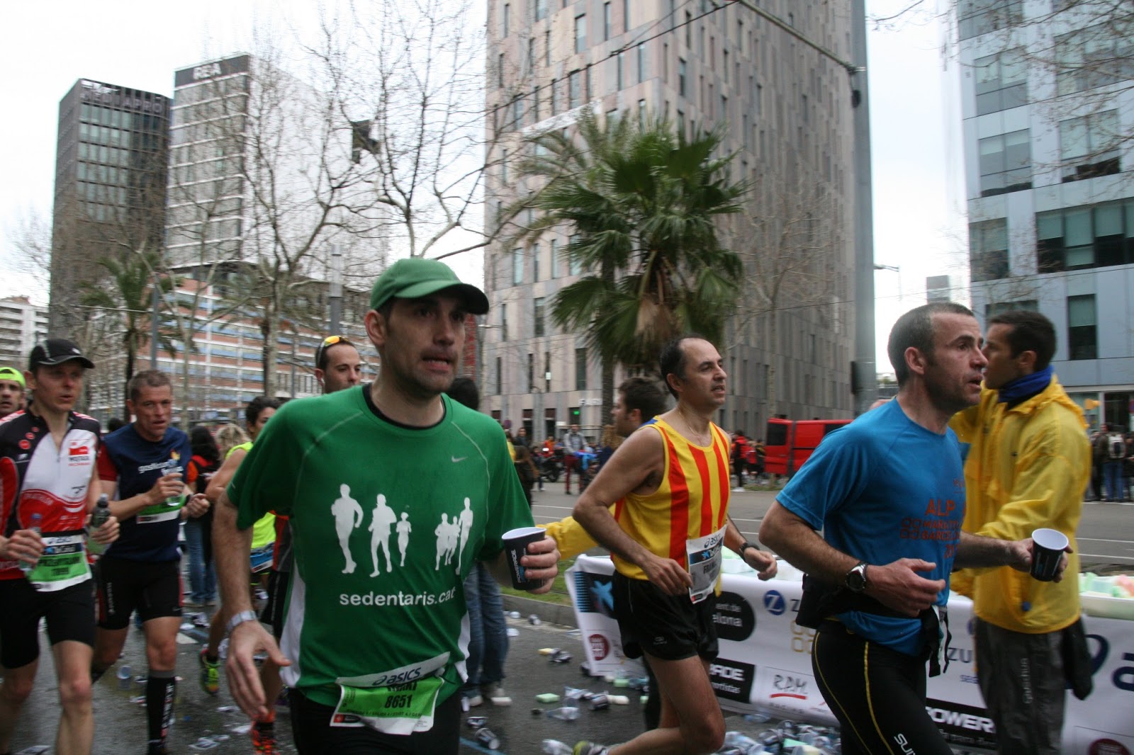 Llega la Diagonal de subida, son 2,5K asi que es larga.Avituallamiento líquido que volvemos a aprovechar. Mucha gente para, pero nosotros solo disminuimos un poco el ritmo. Un poco de agua en botella y Powerade en vaso… ya me estoy convirtiendo en un experto. Voy comandando el grupo y Joan va lanzando ánimos al público para que anime.