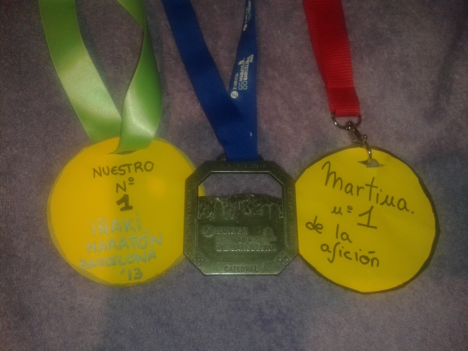 Vamos caminando hasta llegar al avituallamiento final. Martina me da una medalla que ha preparado para su papi :-). Ella lleva otra. Aviso por el móvil que ya llegué y que voy debajo de la escalera en el punto de encuentro. Aprovecho para comer algo de fruta y liquido. Hay que ir recuperando. Llego a la escalera y busco el hueco para sentarme y descansar. Tengo que ir con cuidado con los gestos porque según lo que haga me da rampa. Al poco llega la familia. Me ven cansado y parece que algo pálido. También llega Reyes, Alejandro y los Xavi’s. Todos felices por haber terminado. Me levanto para moverme un poco. Me da mareo. Me siento junto a la fuente donde hace más fresco y me da el aire. La cosa mejora, pero ya han ido a avisar una chica de la cruz roja porque se han asustado. Me acerco hasta donde esta la chica. Me toma el pulso y todo es correcto. Le digo que si veo que no mejoro me paso por una ambulancia. Aviso al grupo que me marcho y que no me quedaré a tomar algo con el resto… lo entienden. El mareo no vuelve. El paseo y el aire me va bien. Estar sentando tanto tiempo, en una zona con poco aire y el agobio de gente no ha sido lo mejor para después de la carrera.