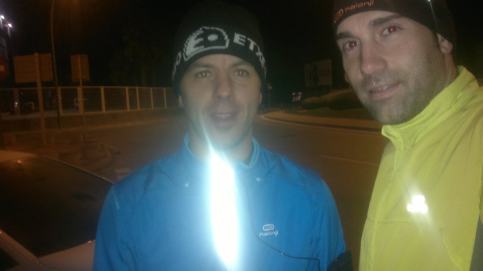 Alex y yo nos pusimos en marcha bien pronto… a las 7:00h para poder llegar a las 8:00h con nuestro tercer miembro de la excursión que nos esperaba en El Prat. La salida fue desde la carretera principal, y fuimos por el tanatorio, cruzando por encima de la C-32 y siguiendo el principio del circuito de la maratón del Mediterrani. Cuando se gira en esta carrera hacia la playa, nosotros seguimos recto, por el arcén / camino lateral de la conocida carretera de los chatarreros (antes estaba lleno de desguaces de coches). Hasta el tramo es complicado porque la mayoría es por arcén así que conviene ser visible. A partir de la carretera de las chatarras, se puede ir por el lateral aunque no hay camino bien preparado. El camino no tiene pérdida porque se trata de continuar la carretera hasta llegar a Mercabarna-Flor… ahí una mujer que esperaba el bus nos dijo «Que humor!» al pasar por su lado…