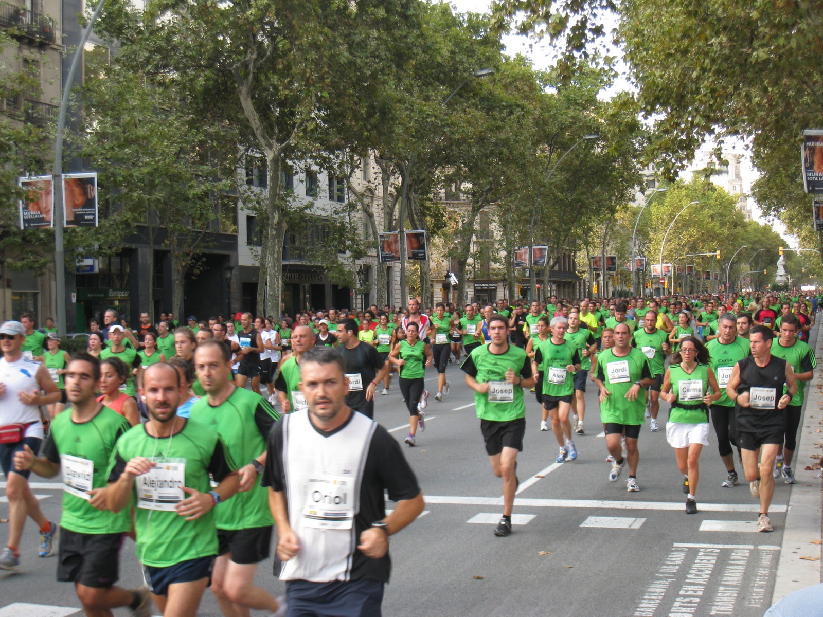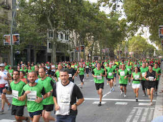 Què ha passat? Eren tots Sedentaris? Doncs resulta que l’organització ha agafat el color verd com l’escollit per fer les samarretes de la cursa. El resultat és que Barcelona s’ha omplert d’una marea verda.