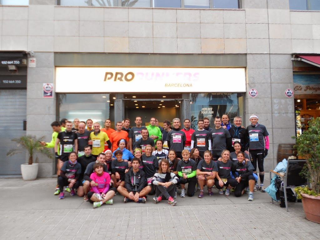 Los Sedentaris se dan cita una hora antes del inicio de la carrera en la tienda de ProRunners, muy próxima a la salida, o más tarde en la calle, pero como algunos llegan con bastante antelación, cambian la tienda por el bar de al lado: Jandro, Iñaki, Reyes y familiares varios. Sí, Iñaki, el mismo que tenía que estar en Madrid… una gripe en mal momento le deja en casa, y corre con el no-dorsal y no-chip de Xavi V, que también está chungo. Después de las presentaciones, cafés y primer cambio de impresiones van a la tienda. Aparece Íñigo.